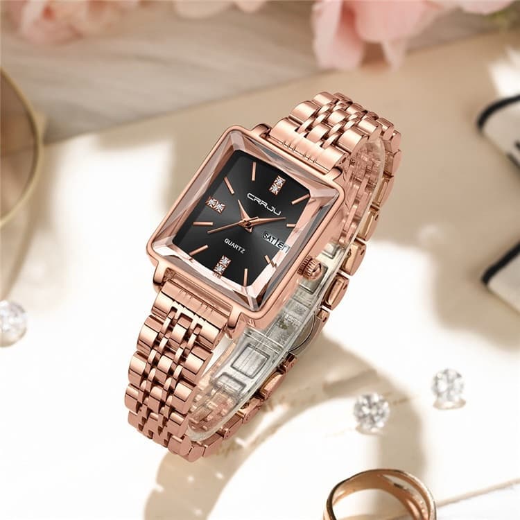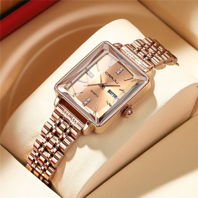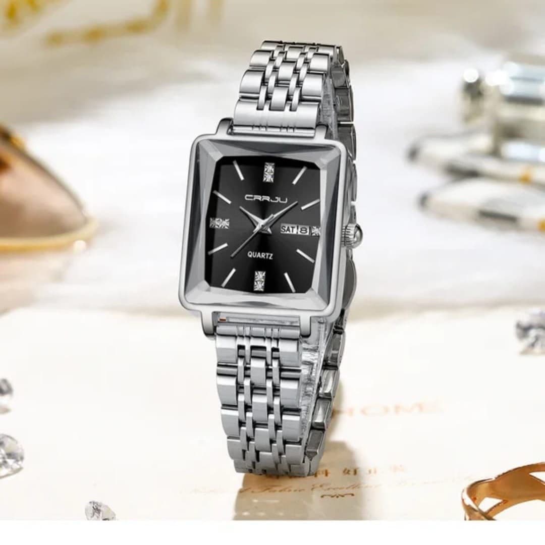 CRRJU 5012 beautifully blends elegance with functionality, making every moment unforgettable. It features a clear day and date display, durable stainless steel straps, and reliable battery-powered movement for precision. With 3 BAR water resistance, this timepiece is designed to keep up with an active lifestyle while maintaining sophistication.